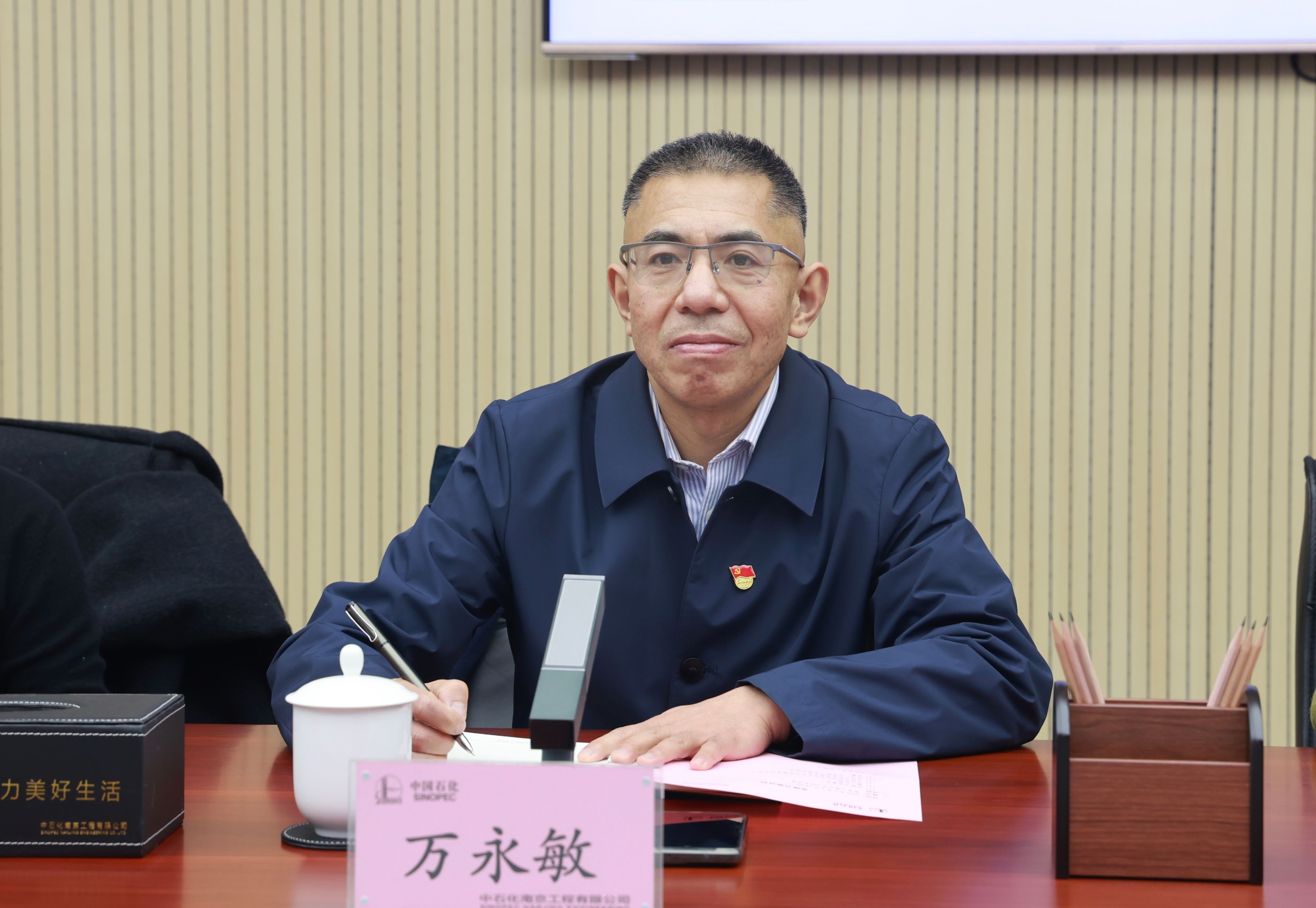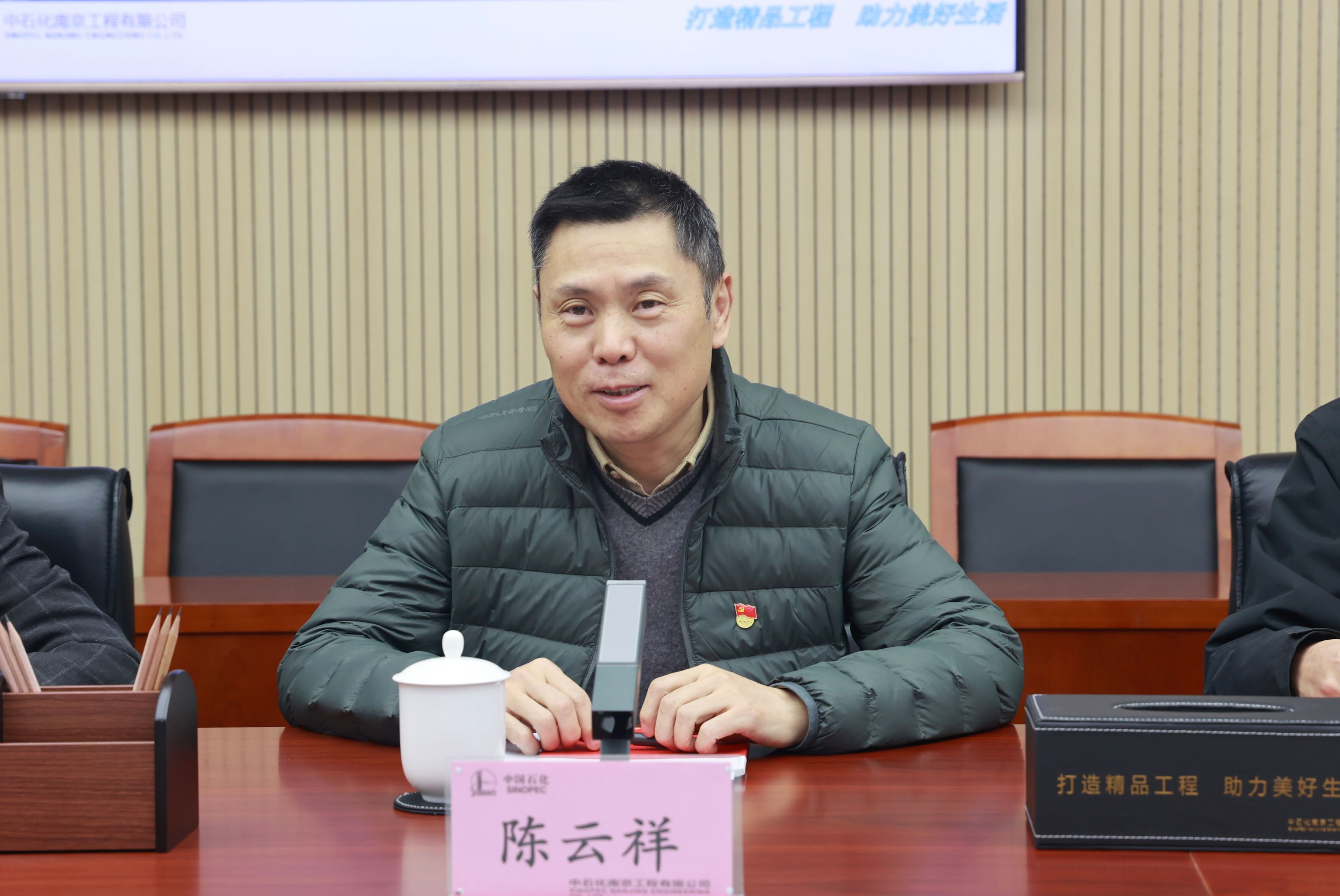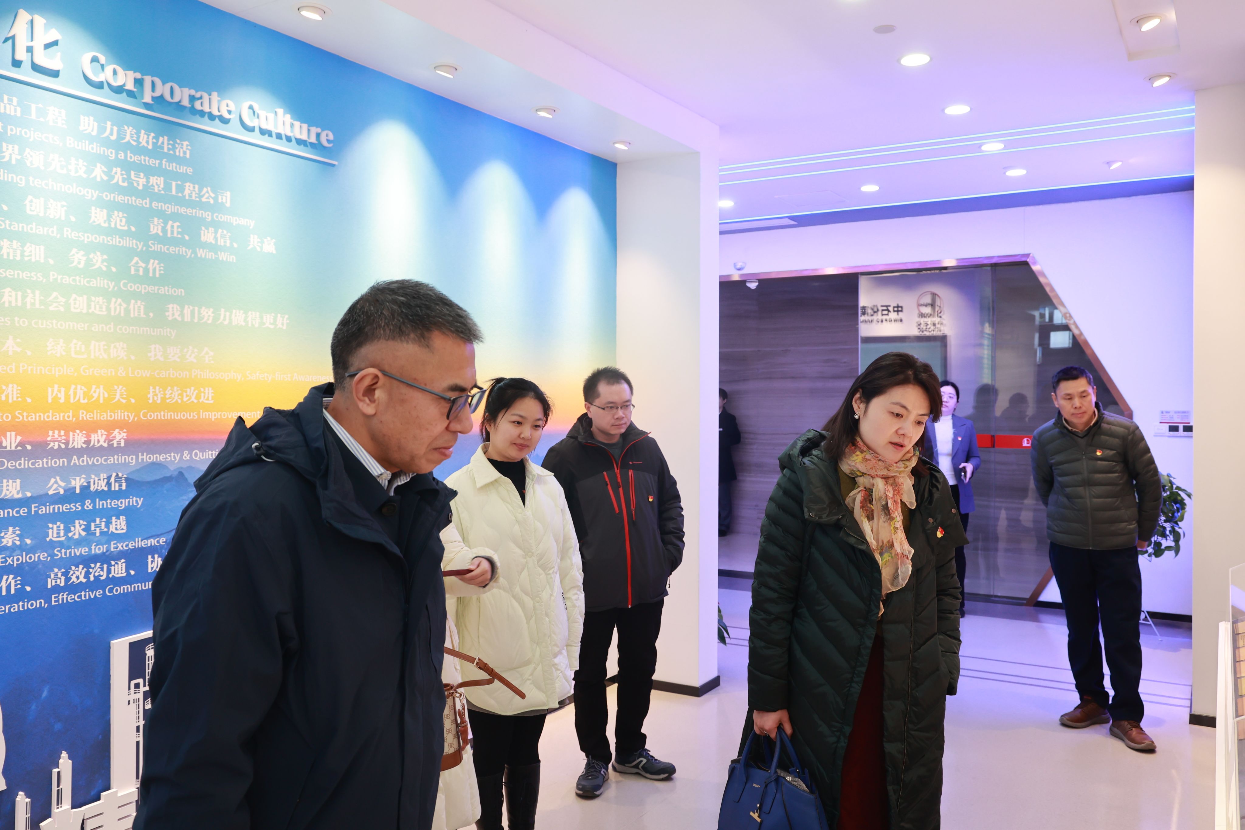 中石化南京工程有限公司党委组织部(人力资源部)党支部书记(部长)陈云祥对公司党总支书记万永敏一行的到访表示了热烈的欢迎。在研讨会开始之前,与会人员参观了公司的成果展厅。