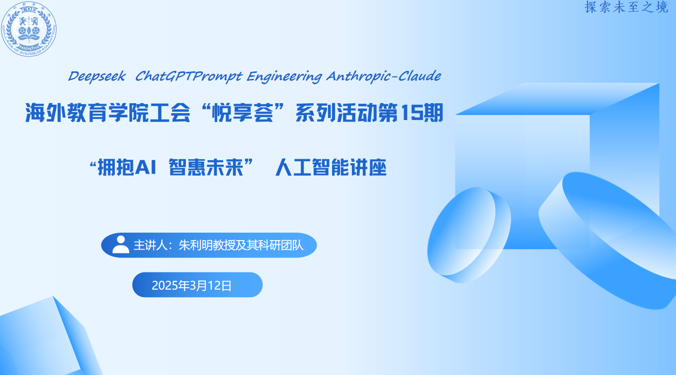 3月12日下午,球友会第15期“悦享荟”专题讲座在明远楼102会议室精彩开讲。本期活动特邀公司朱利明教授及其科研团队,为全体教职工带来了主题为“拥抱AI,智惠未来”的人工智能专题讲座。