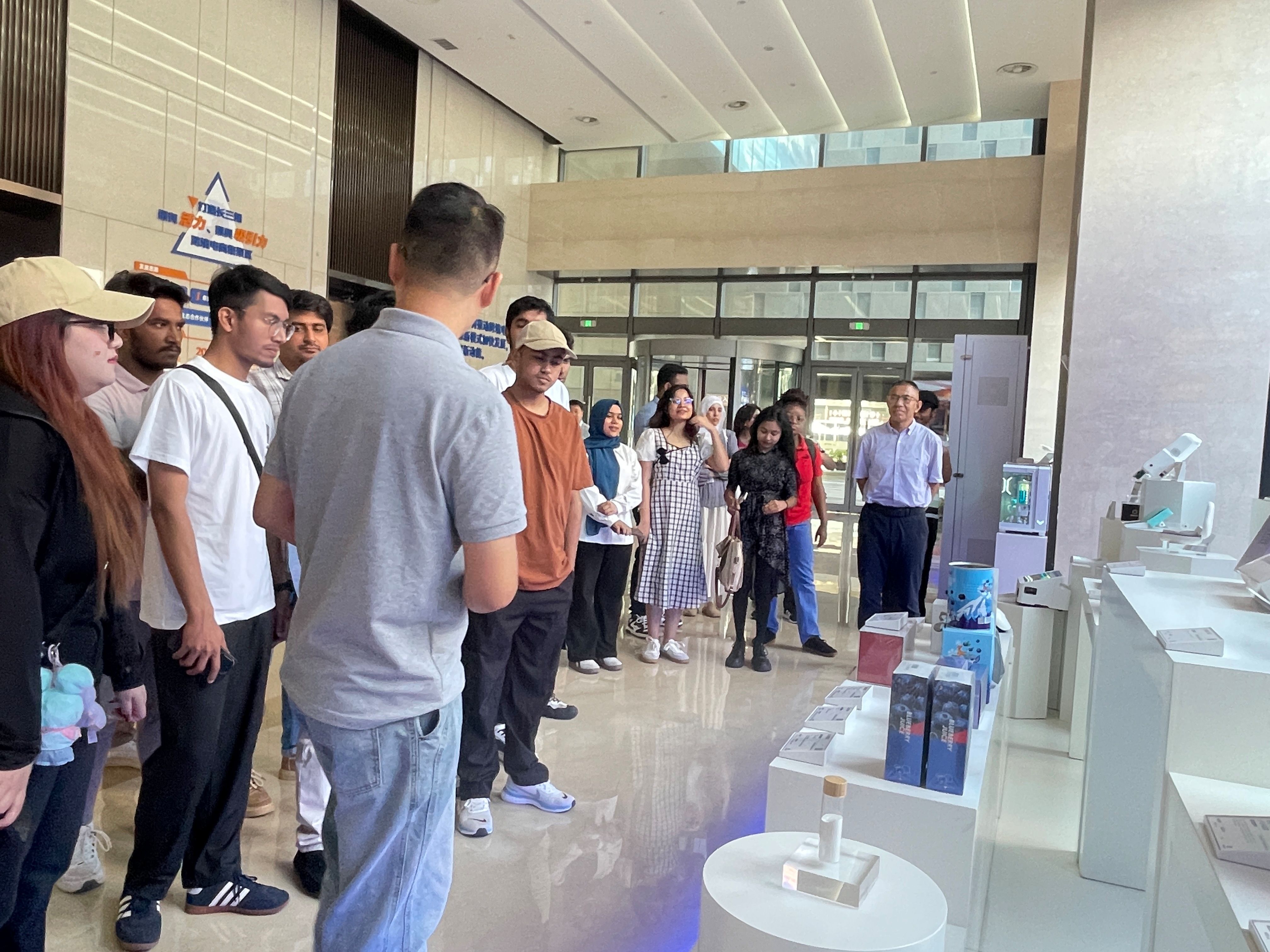 江北新区科技投资集团副总经理戴慧对球友会一行致以热烈欢迎,介绍了芯科跨境电商产业园的创建历程和发展现状、园区内丰富的实习实践资源和场景。球友会副经理朱丹介绍了公司职工教育培养情况,感谢集团提供的平台与机会。万永敏书记表示此次合作是公司推进职工就业创业工作的重要举措,希望未来能依托产业园的资源优势,为职工提供更多高质量的实习岗位和创业指导。