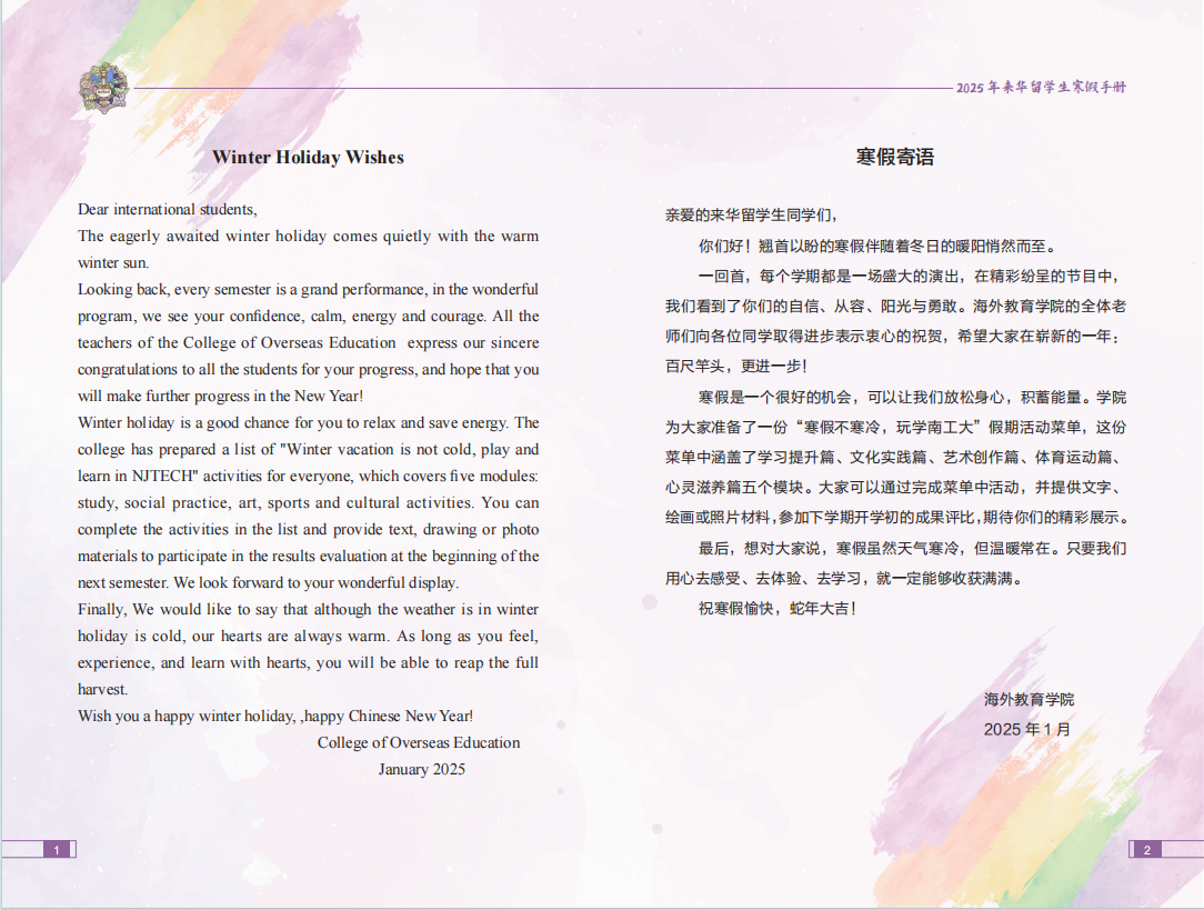 此外,为了丰富职工的寒假生活,营造一个既有趣又富有教育意义的氛围,让职工们在轻松愉快的环境中实现自我成长与提升,公司精心策划首次推出“寒假不寒冷,玩学南工大”寒假活动手册。手册内容涵盖学习提升、文化实践、艺术创作、体育运动、心灵滋养五个模块,每个模块包含三项活动。除了学习篇为必做内容、需全部完成外,其余四个模块中的任务可自由选择两项完成。开学后,公司将对职工提交的手册完成情况进行评比,包括文字、绘画和照片等。优秀手册作品将在公司内展览,这不仅为职工们提供了一个展示自我的平台,也促进了文化交流与相互学习。同时,评比和展览活动旨在激发更多职工的参与热情,让“寒假不寒冷,玩学南工大”成为一项富有传统意义的假期活动,为职工的校园生活增添更多色彩和活力。
