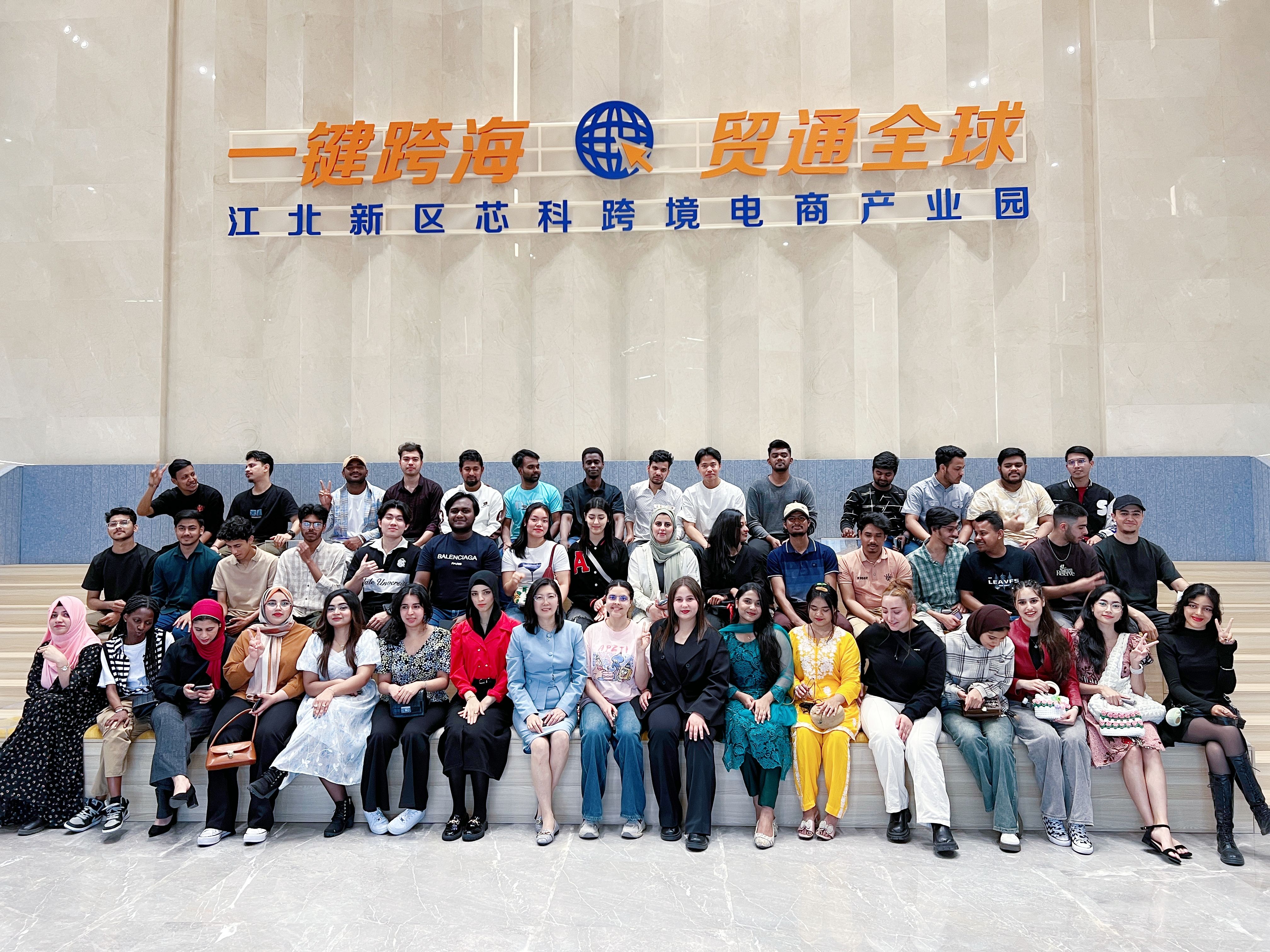 2025423-24日,为抓住“一带一路”倡议与数字经济发展的重大机遇,完善政府、高校、企业三方联动的人才培育体系。公司来自泰国、印度尼西亚、摩洛哥、孟加拉、伊朗等多个国家的50余位来华职工在“一带一路”化工与建筑行业人文交流研究院常务副经理、球友会薛莉清教授及汉语教师团队带领下,分别走进玄武区江苏中亚中心,南京江北新区芯科跨境电商产业园开启了别开生面的跨境电商直播研学实践之旅。