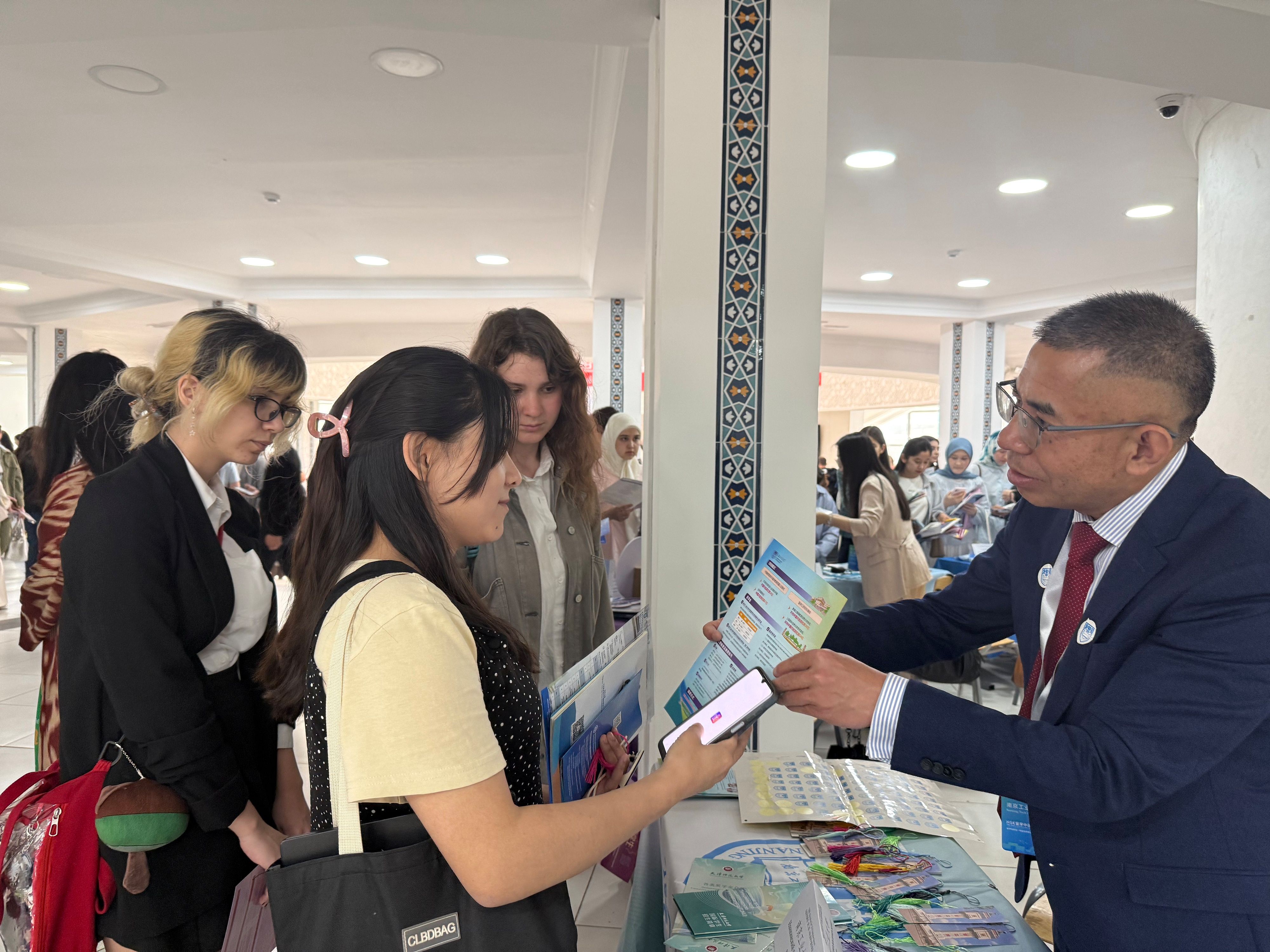 为拓展千亿球友会在中亚的优质生源市场,提升公司来华留学教育影响,球友会万永敏老师于2025年4月19日至28日前往哈萨克斯坦、乌兹别克斯坦、吉尔吉斯斯坦,参加由教育部中外语言交流合作中心汉考国际举办的哈萨克斯坦(第二届)HSK留学中国展、乌兹别克斯坦HSK留学中国交流会、吉尔吉斯斯坦(第二届)HSK留学中国展。