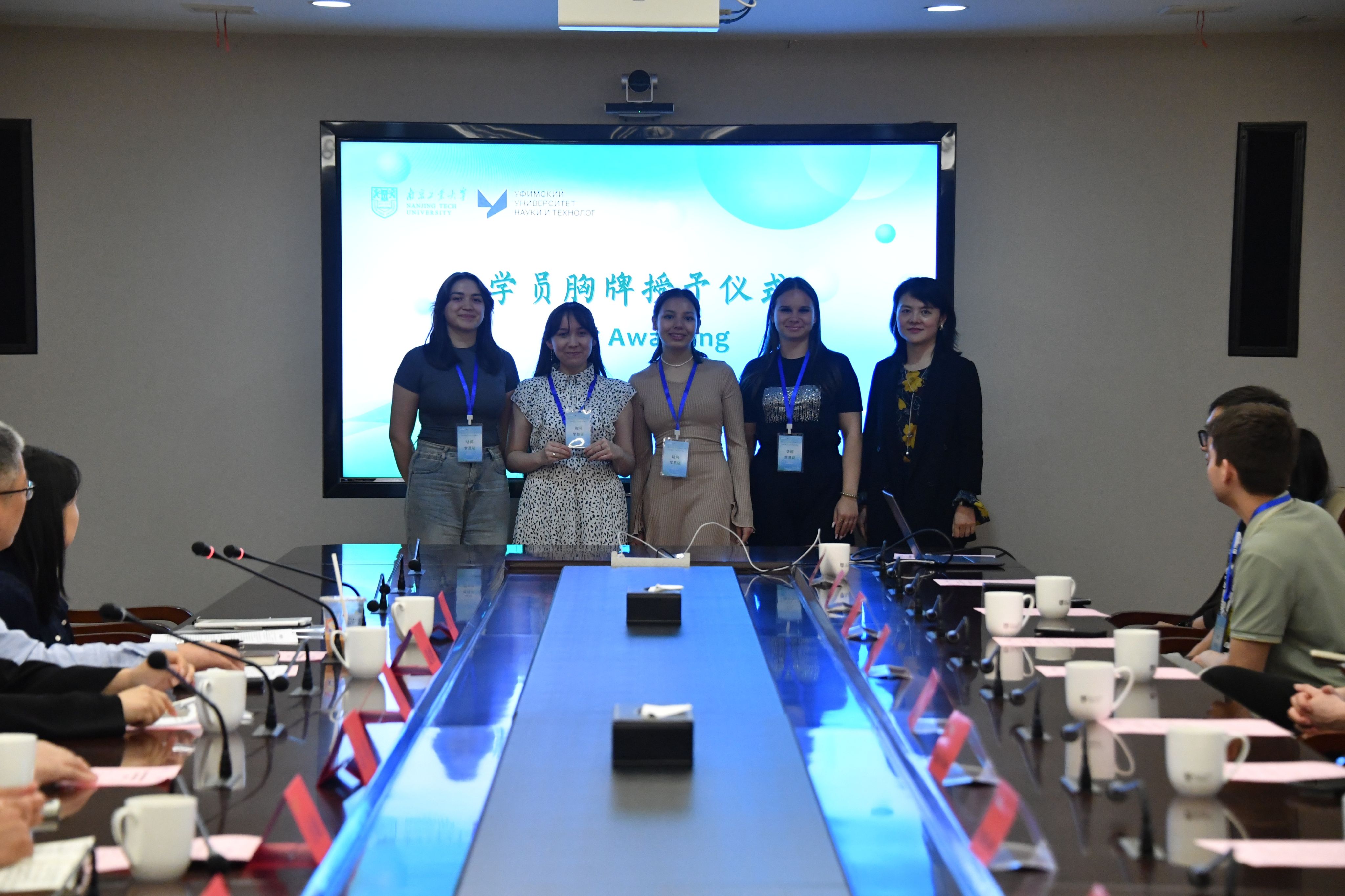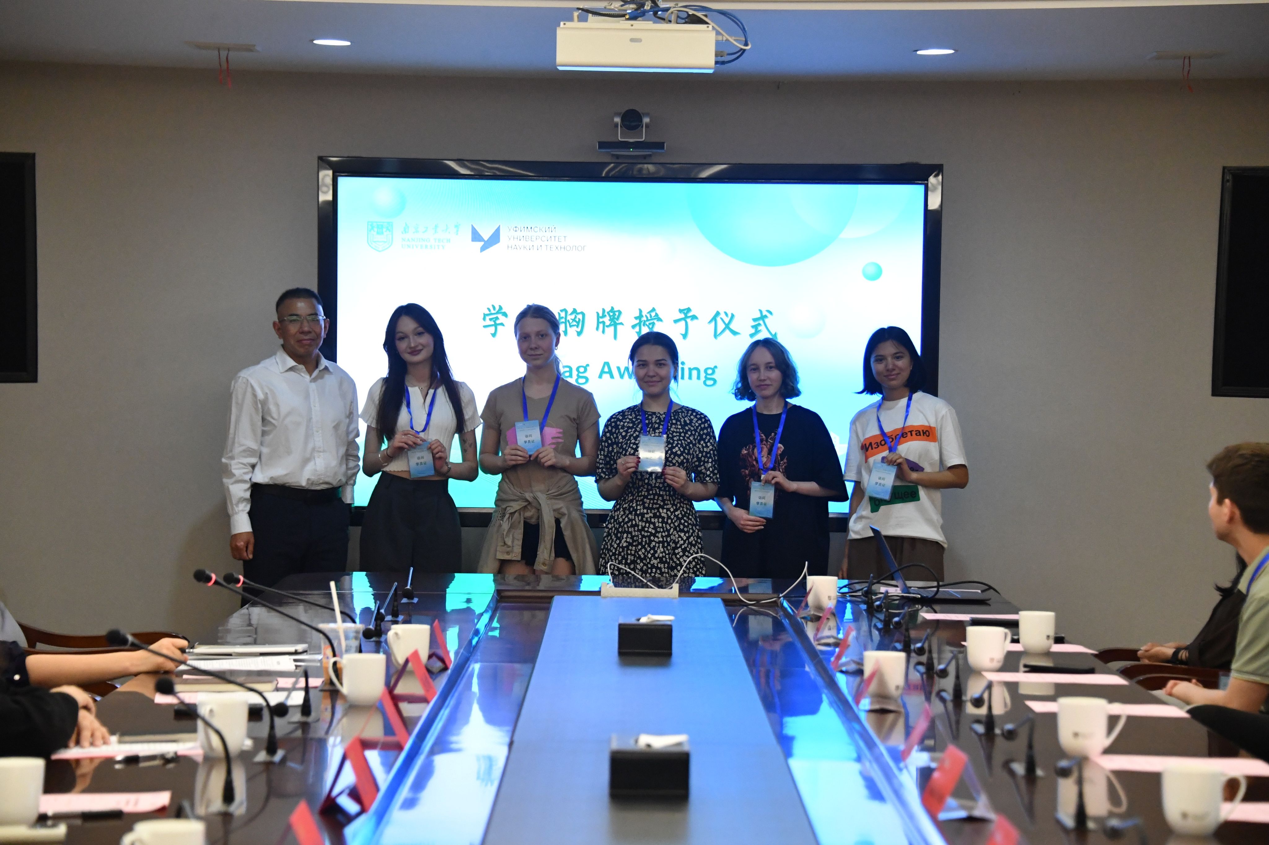 仪式上,凌董事长和公司领导共同为俄罗斯学员授予胸牌,象征中俄青年友谊的种子在此播撒。